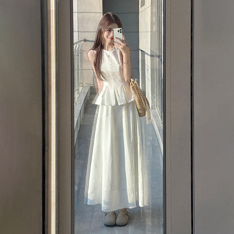 3523法式气质无袖背心白色裙子女夏季2025新款高级感穿搭套装长裙
